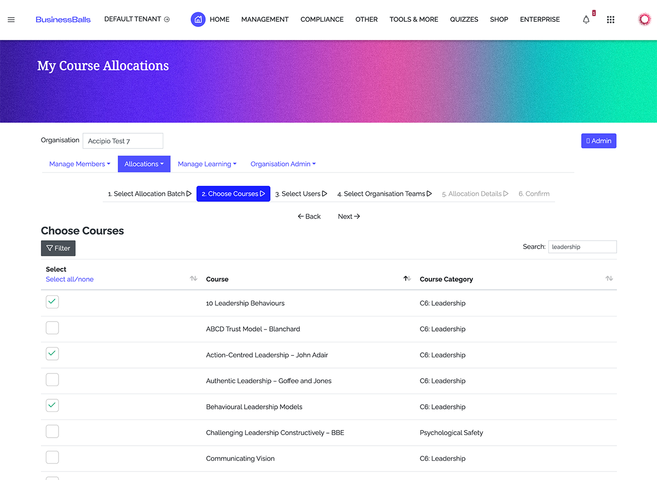Create learning pathways of courses, allocate learning and pre-purchased licences to users.