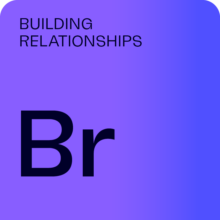 Purple tab, like a periodic table entry labelled with Br, meaning Building Relationships.