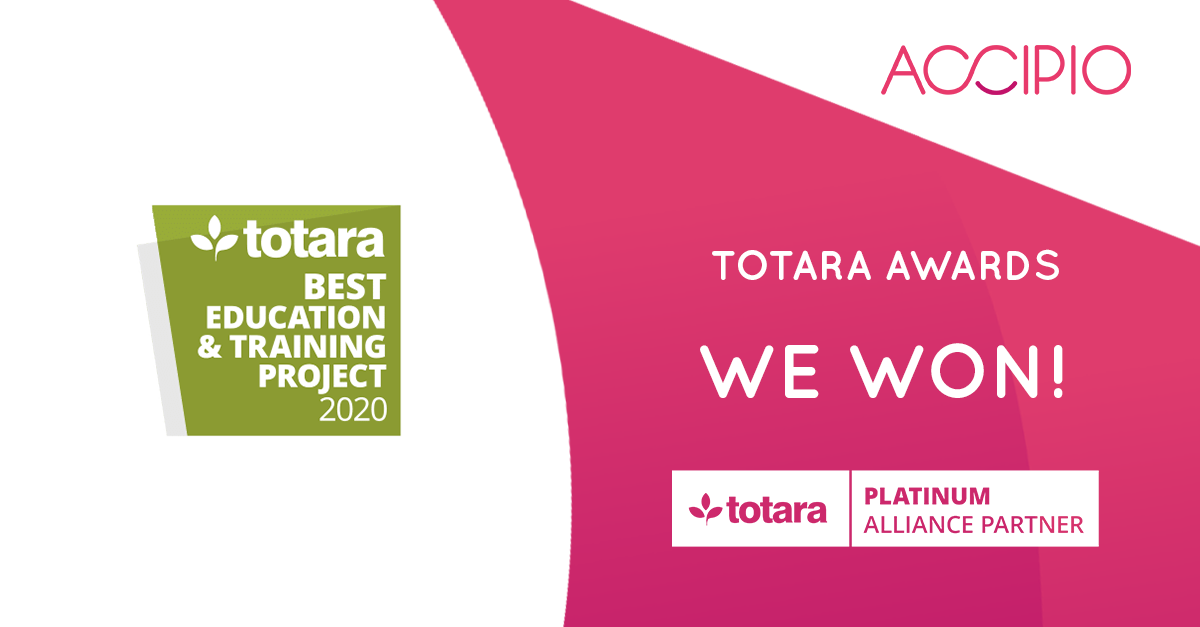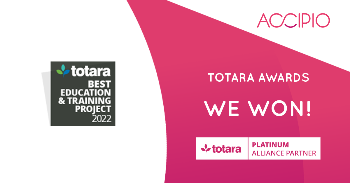 Accipio has won the ‘Best Use of Integrations’ prize at the Totara Awards – 2024. The annual Totara Awards recognise the most ground-breaking implementations of Totara technology. Why did Accipio win? The win – Accipio’s fifth Totara award in consecutive years – recognised their work......
