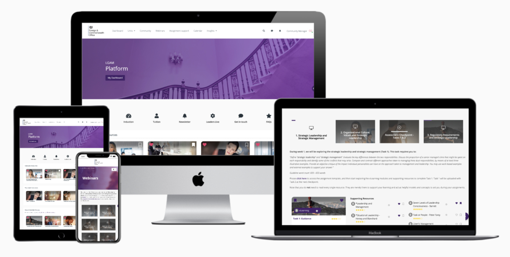 When they approached us, the FCDO had no existing central learning platform. All development was self-directed but framed around promotion pathways. There were, therefore, huge numbers of diplomats requiring a more structured approach to their leadership development. There was also no accreditation linked to their existing leadership development programmes, leaving disgruntled those who did not gain promotion to senior positions after their interviews. They were initially looking for a provider to deliver the core components of the Diplomatic Academy Leadership Gateway Development Programme, which would be for approximately 900 senior diplomats, heads of missions and British ambassadors stationed around the globe.